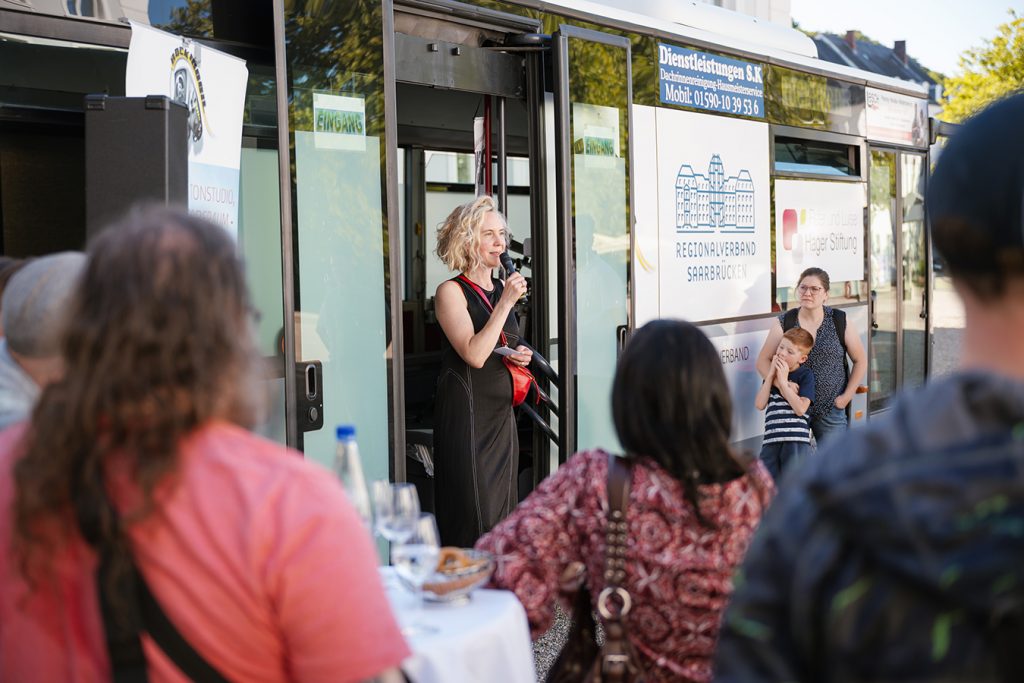 Lehberger beschrieb das Rockmobil als einen Ort, an dem „Kreativität und Gemeinschaft wachsen können“. Sie freue sich, dass der Regionalverband mit dem SRV nach bereits 25-jähriger Kooperation nun mit dem neuen Bus ein neues Kapitel aufschlagen könne. Der Regionalverband unterstütze dieses für Jugendliche niedrigschwellige Projekt „sehr gerne, denn es vereine Jugendförderung mit kultureller Bildung“, so Dr. Lehberger.