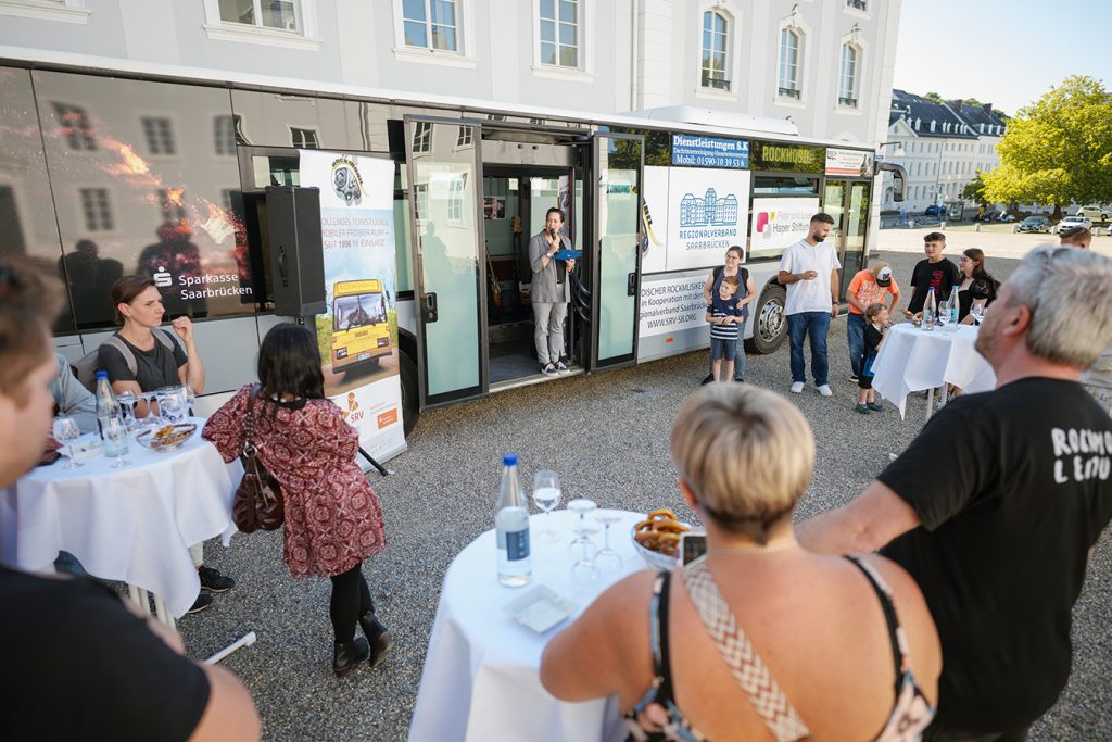 Am Freitag wurde das Rockmobil des Saarländischen Rockmusikerverbands e.V. (SRV) vor dem Saarbrücker Schloss offiziell eingeweiht. Bei sommerlichem Wetter begrüßte Regionalverbandsdirektorin Dr. Carolin Lehberger die Anwesenden. Unter ihnen waren neben Musiker:innen und Fans des Rockmobils auch die Bundestagsabgeordnete Josephine Ortleb, die SPD-Landtagsabgeordneten Sascha Haas und Damhat Sisamci und vhs-Direktorin Nicole Boissier.