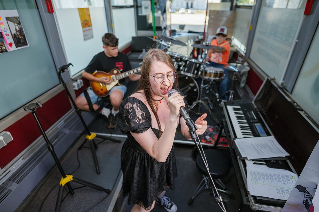 Im Anschluss an den offiziellen Teil der Einweihungsfeier rückten die Jugendlichen der Rockmobil-Band The Riff Riders in den Mittelpunkt und zeigten den Anwesenden ihr musikalisches Können. Sie spielten verschiedene Coverversionen wie beispielsweise „Seven Nation Army“ von The White Stripes, den Eagles-Hit „Hotel California“ und „Summer Of ‘69“ von Bryan Adams.